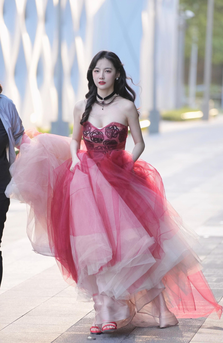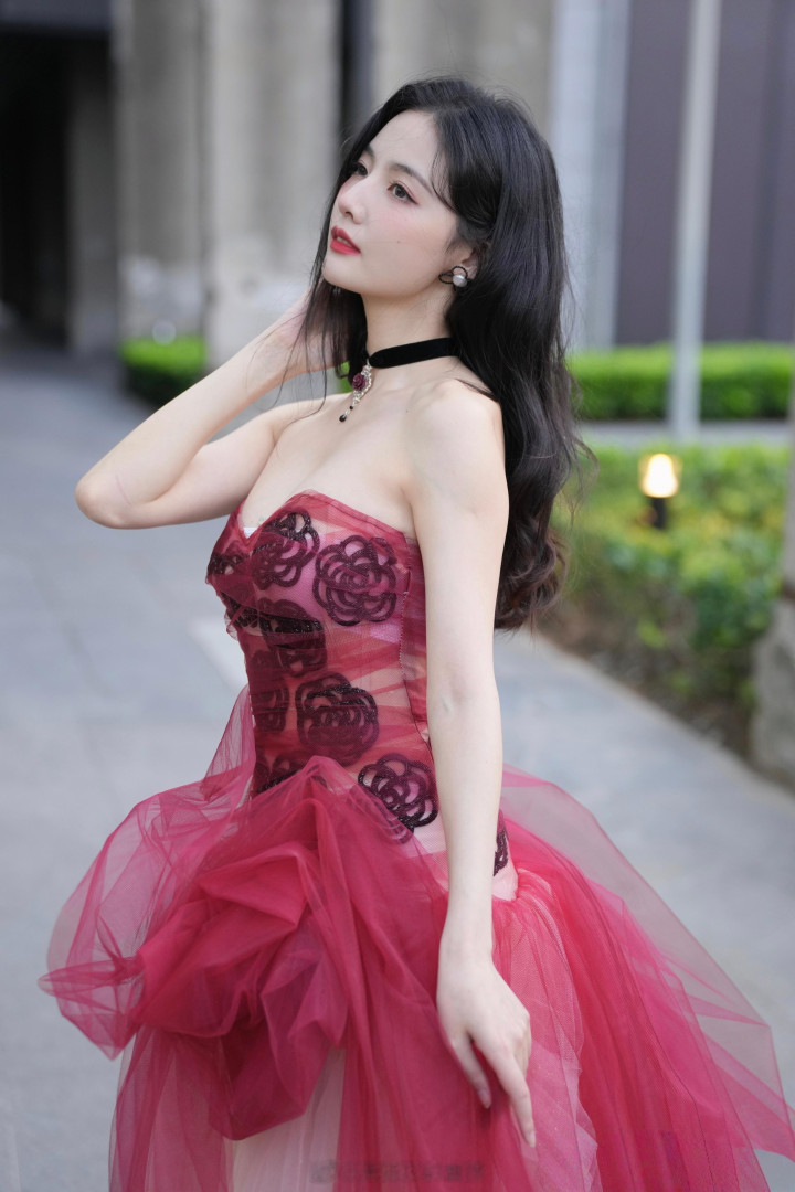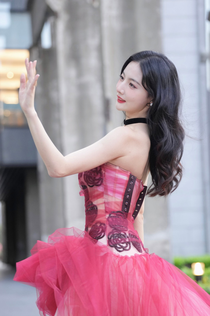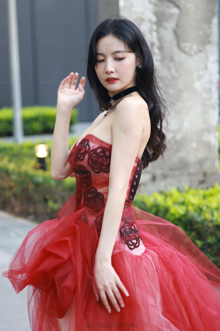 赵粤化身“丰饶女神”,穿玫瑰抹胸裙秀饱满身材,白皙迷人!